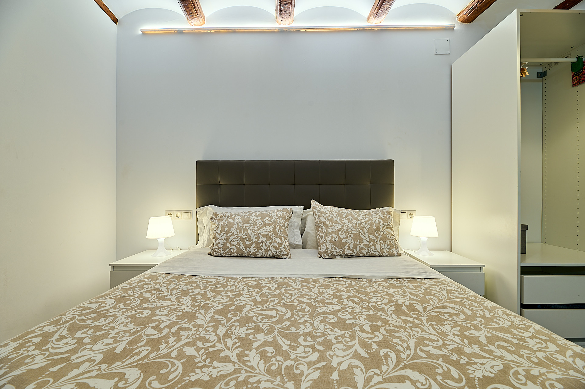 Apartamento con encanto en el corazón del casco antiguo de Valencia. Situado muy cerca de la Plaza del Carmen, la Plaza de la Reina, la Catedral, la Lonja de la Seda y el Mercado Central. Se trata de una vivienda con carácter que cuenta con dos dormitorios dobles. El baño del apartamento está en suite en uno de los dormitorios. Dispone de cómodo sofá cama y una cocina completamente equipada. El apartamento se encuentra en una finca histórica, obra de un prestigioso arquitecto del siglo XIX.