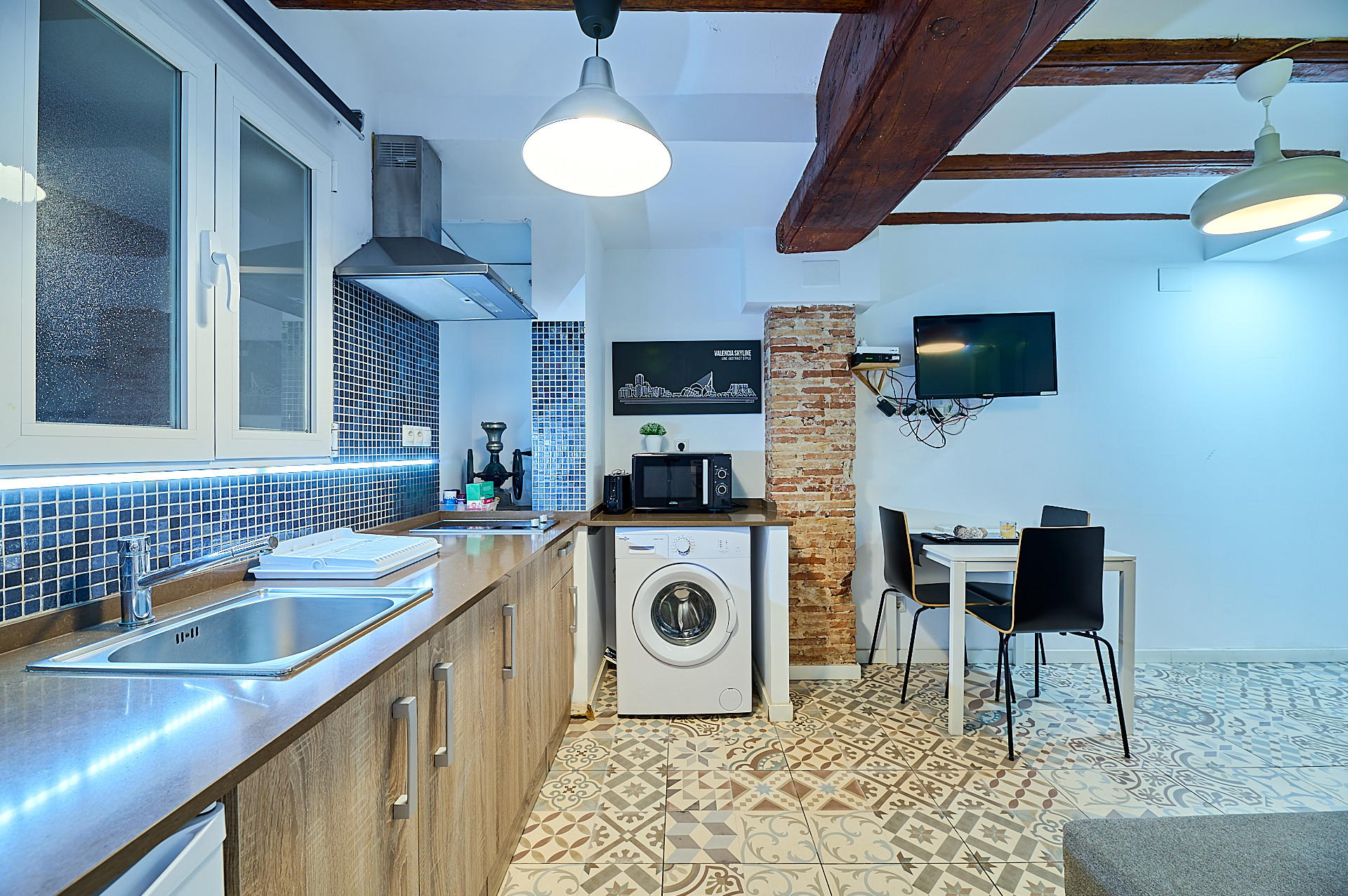 Die Ferienwohnung in Valencia verfügt über 2 Schlafzimmer und hat eine Kapazität für 4 Person(en). Unterkunft verfügt über 60 m². Die Unterkunft verfügt über eine Waschmaschine, ein Bügeleisen/-brett, ein Internetanschluss (WLAN), ein Föhn, eine Wärmepumpe, eine Klimaanlage, 1 Fernseher. Die Offene Küche mit Ceranfeld ist ausgestattet in einen Kühlschrank, eine Mikrowelle, ein Backofen, Gefrierschrank, Geschirr/Besteck, Kochutensilien, eine Kaffeemaschine, einen Toaster und einen Wasserkocher.